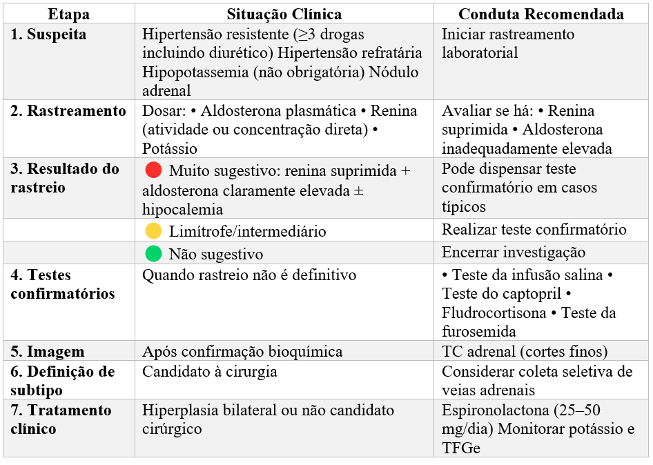 Mas em casos clássicos (hipocalemia espontânea + renina suprimida + aldosterona elevada), muitas vezes o diagnóstico já está praticamente definido.